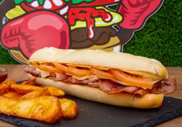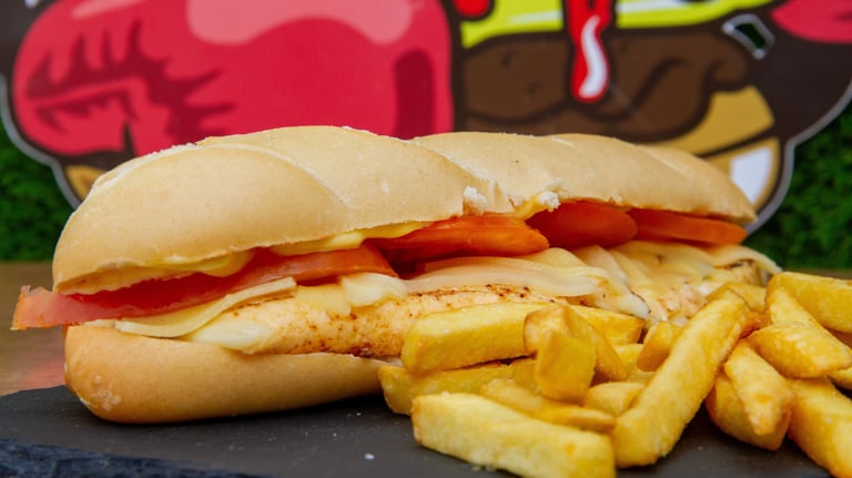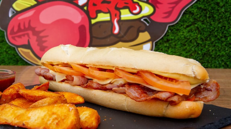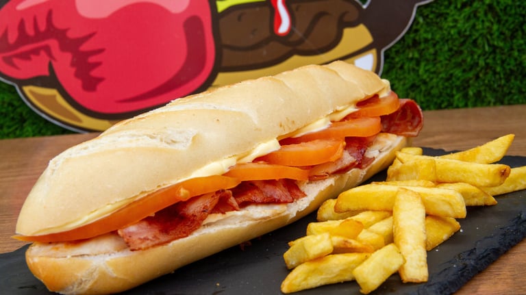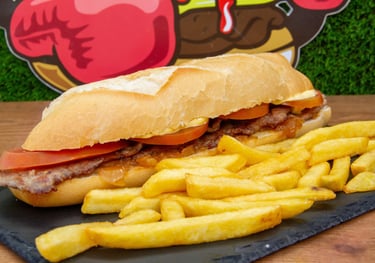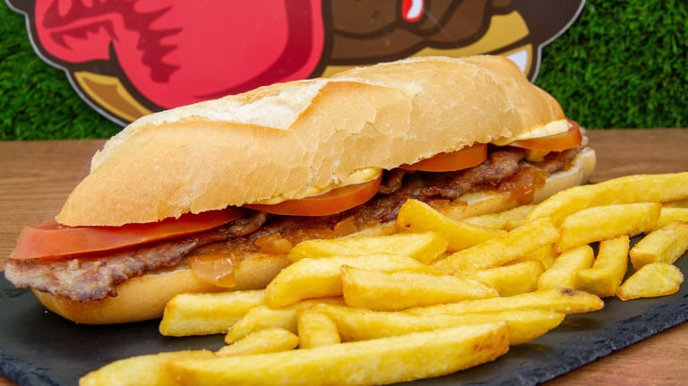 Planchitas de pollo o cerdo, tomate, bacon y mayonesa