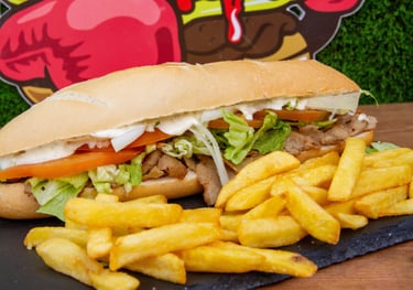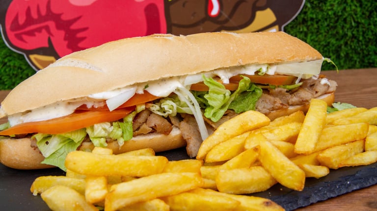 Carne de kebab, lechuga, tomate, cebolla y salsa deluce