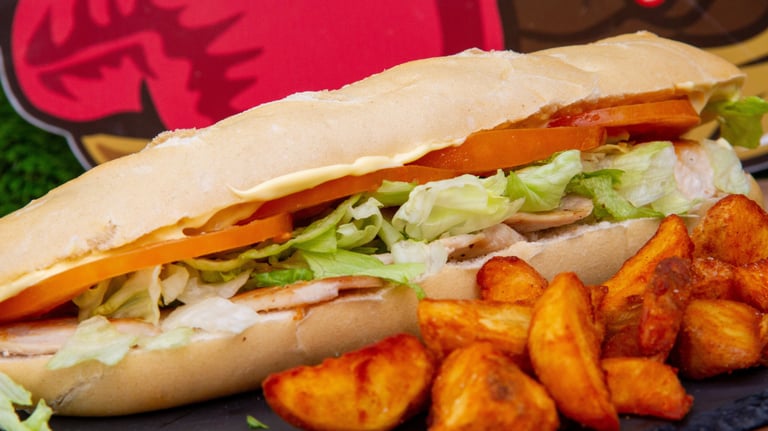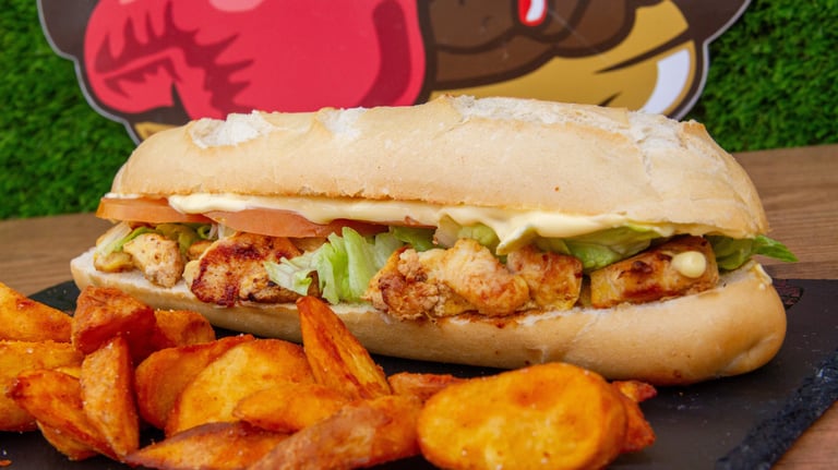 Pinchito de pollo, tomate, lechuga y mayonesa