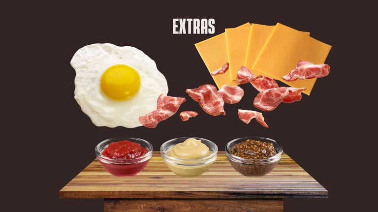 Queso, Huevo, bacon o salsas